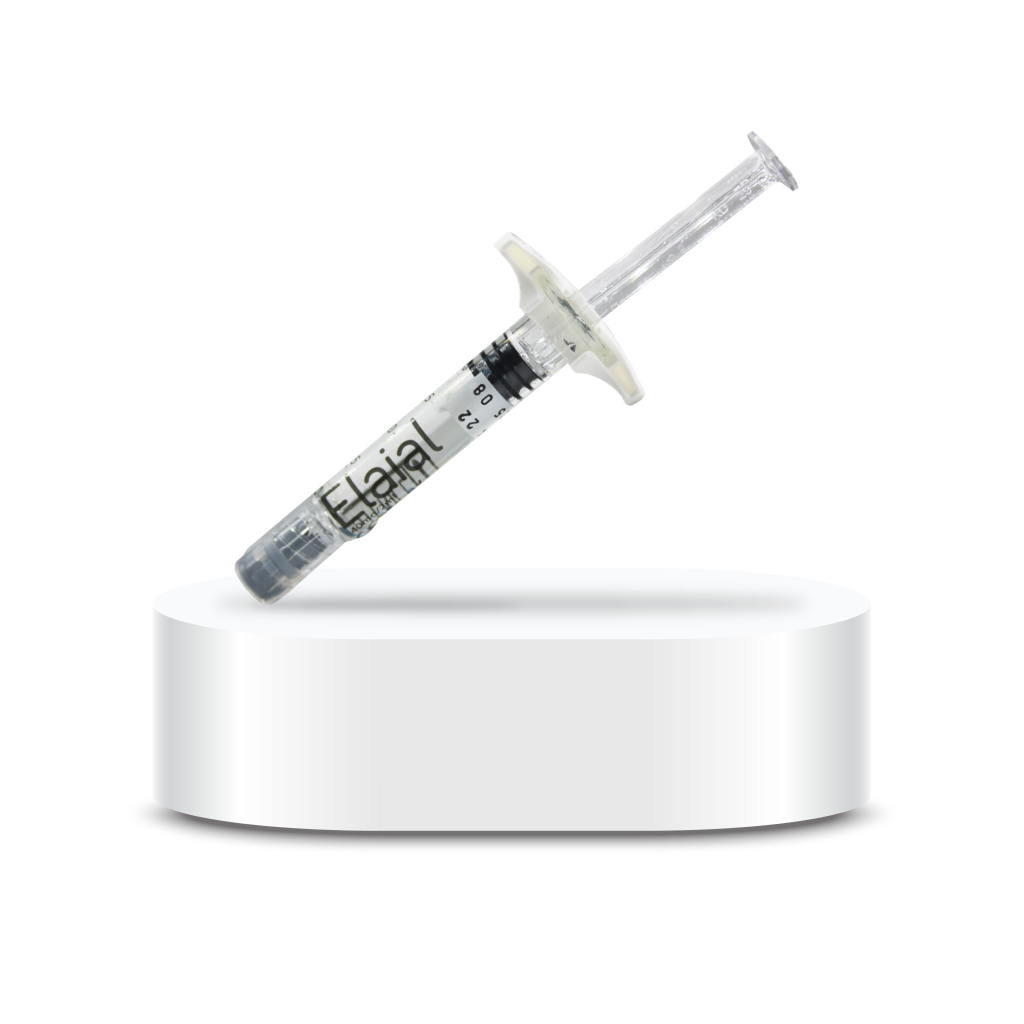 It is formulated at a concentration of 20mg/ml of medium/high molecular weight sodium hyaluronate (1.5 kDa). in a physiological, biodegradable and sterile form. In addition, Elaial contains sodium chloride, sodium dihydrogen, disodium phosphate dodecahydrate and water for injections.